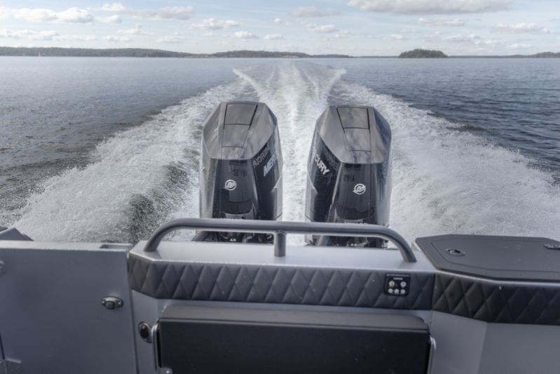 860 T ligger också stadigt i vattnet vid kurvtagning. Den är lugn att hantera även snäva svängar i rejält höga hastigheter, så länge de görs kontrollerat. Elstyrningen som följer med V10 Mercury ger dig goda förutsättningar för detta: styrningen är lätt, precis och snabb, inte alls neurotisk.